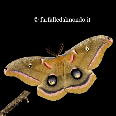 Antheraea polyphemus, splendido Saturnide, è tra le più grandi falene del Nordamerica (apertura alare 13-15 cm).