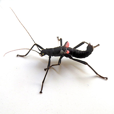 L’allevamento di questo bel Fasmide originario del Perù, color nero e dall’aspetto vellutato, non richiede troppa umidità: è sufficiente nebulizzare la teca di allevamento un paio di volte la settimana.