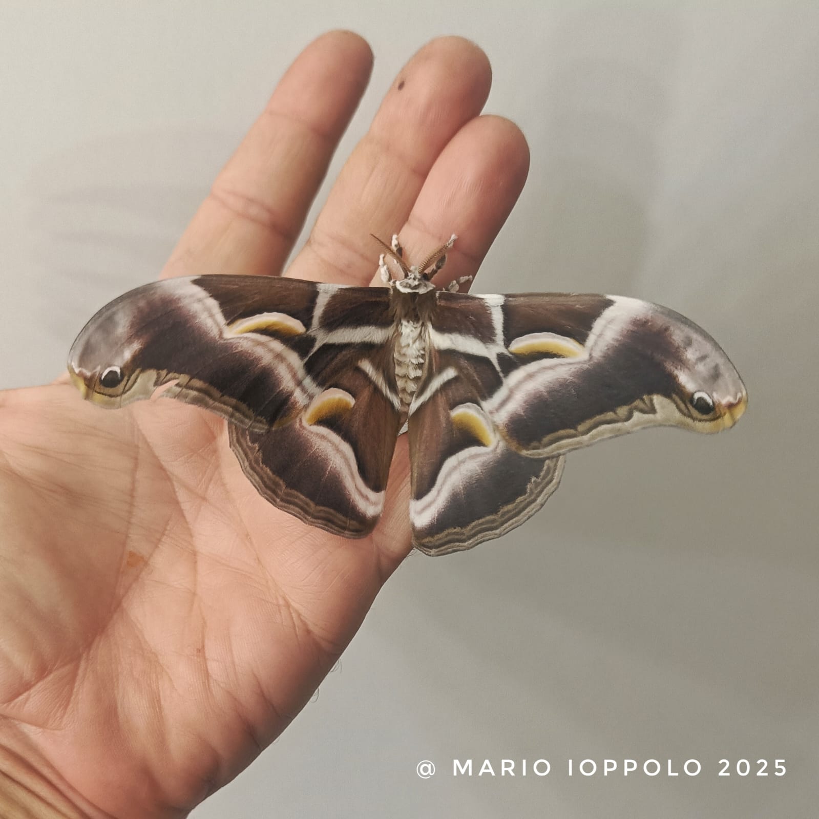 Samia ricini o bombice del ricino (in questo caso si tratta della razza “zebra”) è una grande falena domestica (appartenente alla famiglia dei Saturnidi) allevata da secoli per la seta dei suoi bozzoli.